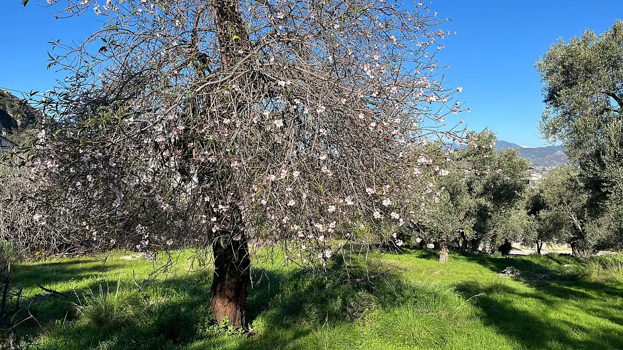 Fethiye ilçesinde badem ağaçları, Şubat ayında çiçek açarak baharın erken geldiğinin sinyallerini verdi. Özellikle kırsal mahallelerde ve tarım arazilerinde açan badem çiçekleri, doğada kartpostallık görüntüler oluşturdu.